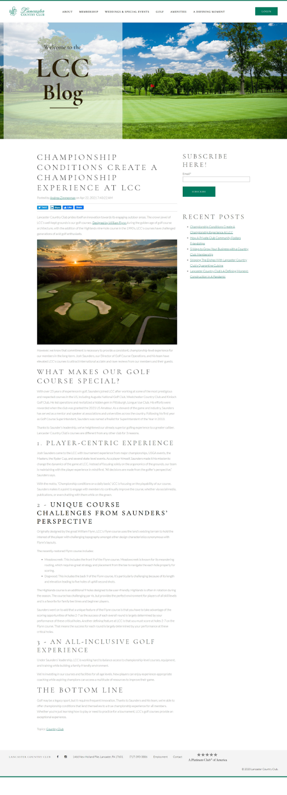 The Lancaster Country Club needed a website that not only would showcase the new face of the club but also made it easy for prospective members to take the next step’s in the buyer's journey and to delight existing members.